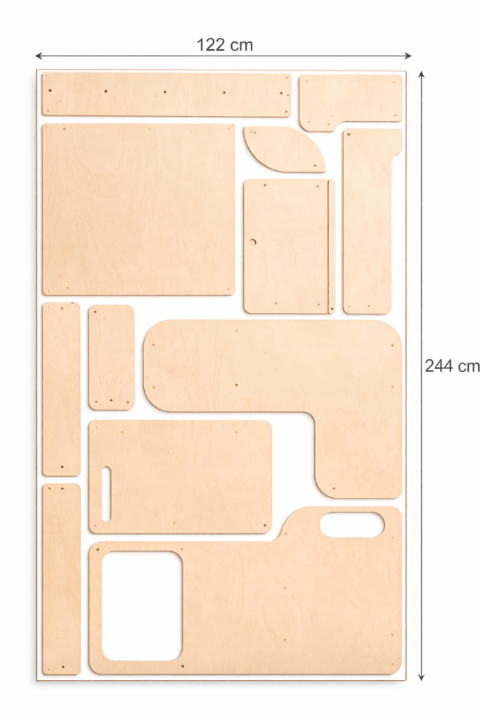 • Servicio CNC: 80 € por plancha, a una fresa, para materiales de hasta 1220x2440x15 mm de grosor